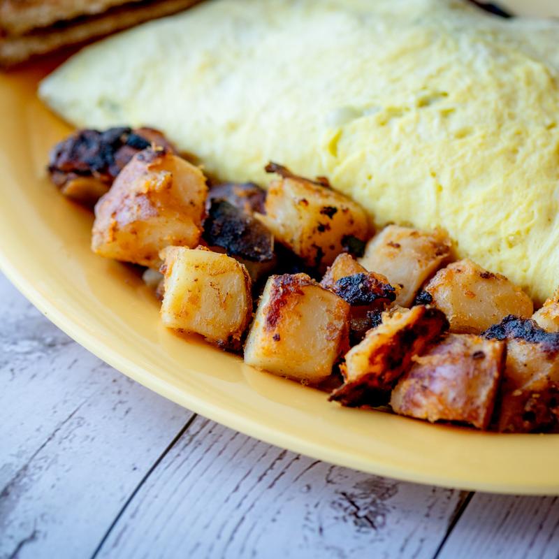 Made with 3 large farm fresh eggs, served with a choice of toast and home fries or baked beans.